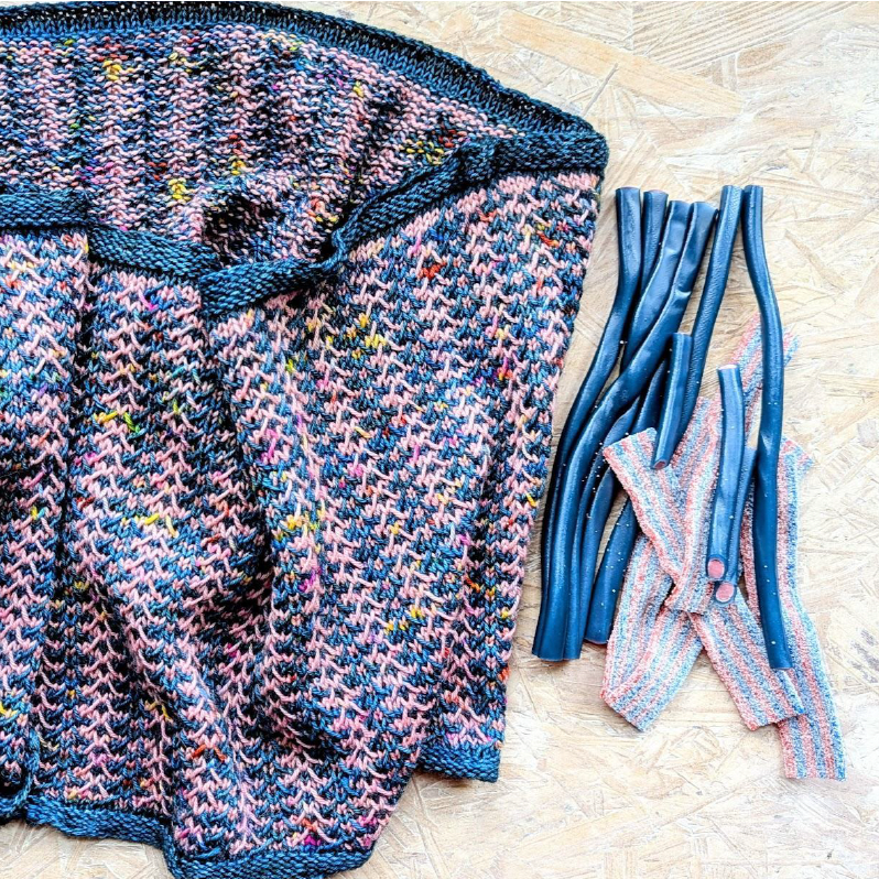 Meet Intertwined by Dawn Barker: a playful loop of interlaced stitches in bold contrast. Knit in Cousteau and Pixie Stix on Woolcycle Sport, it’s soft, striking, and ready for seaside strolls (candy optional).