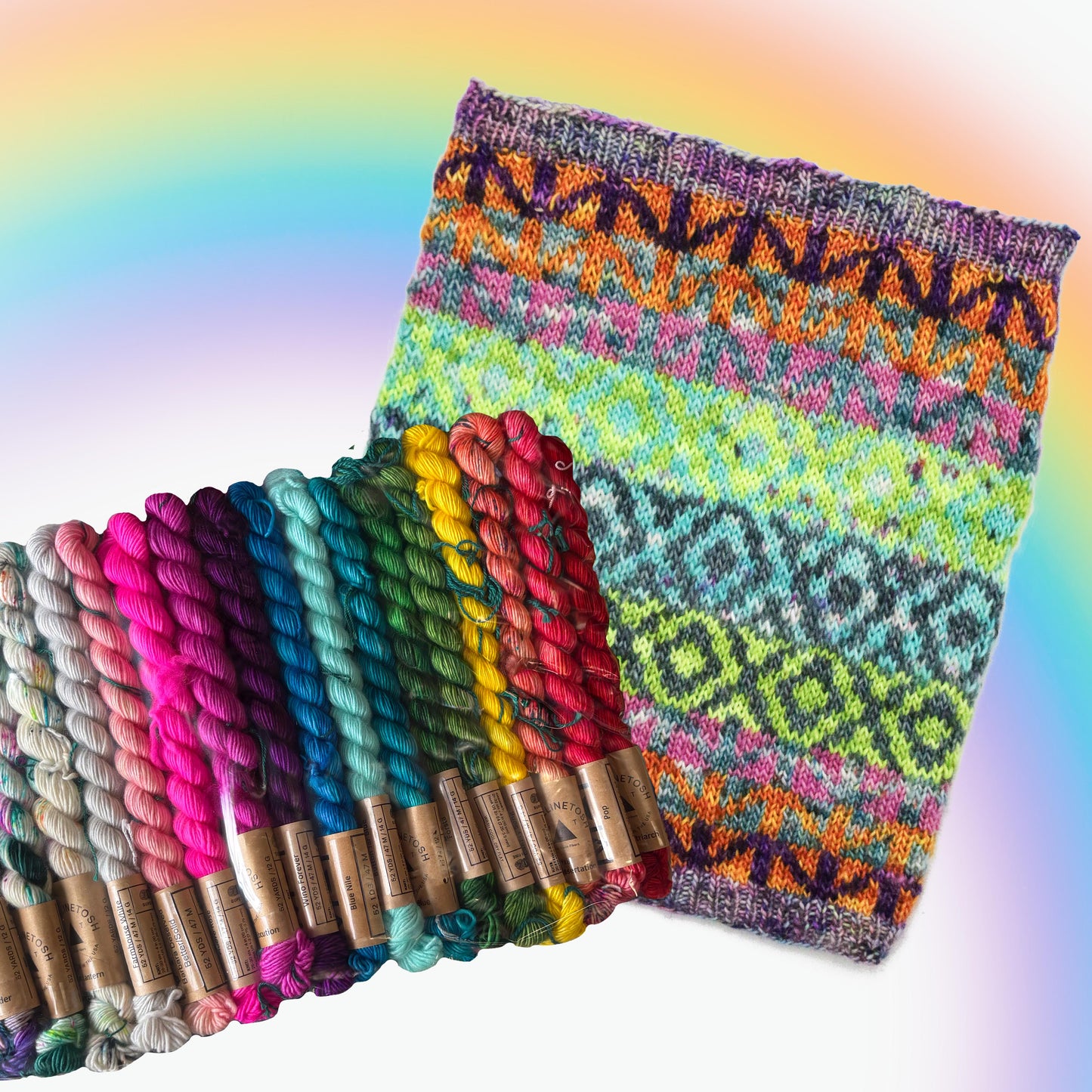 Get a rainbow of 20 hand-selected Unicorn Tails + a free pattern for Jen Geigley’s punk, graphic Motley Hoof Cowl.
