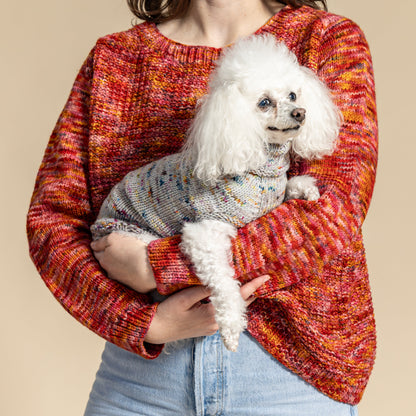 A top down fitted sweater with a single layer ribbed turtleneck, and ribbed body band.