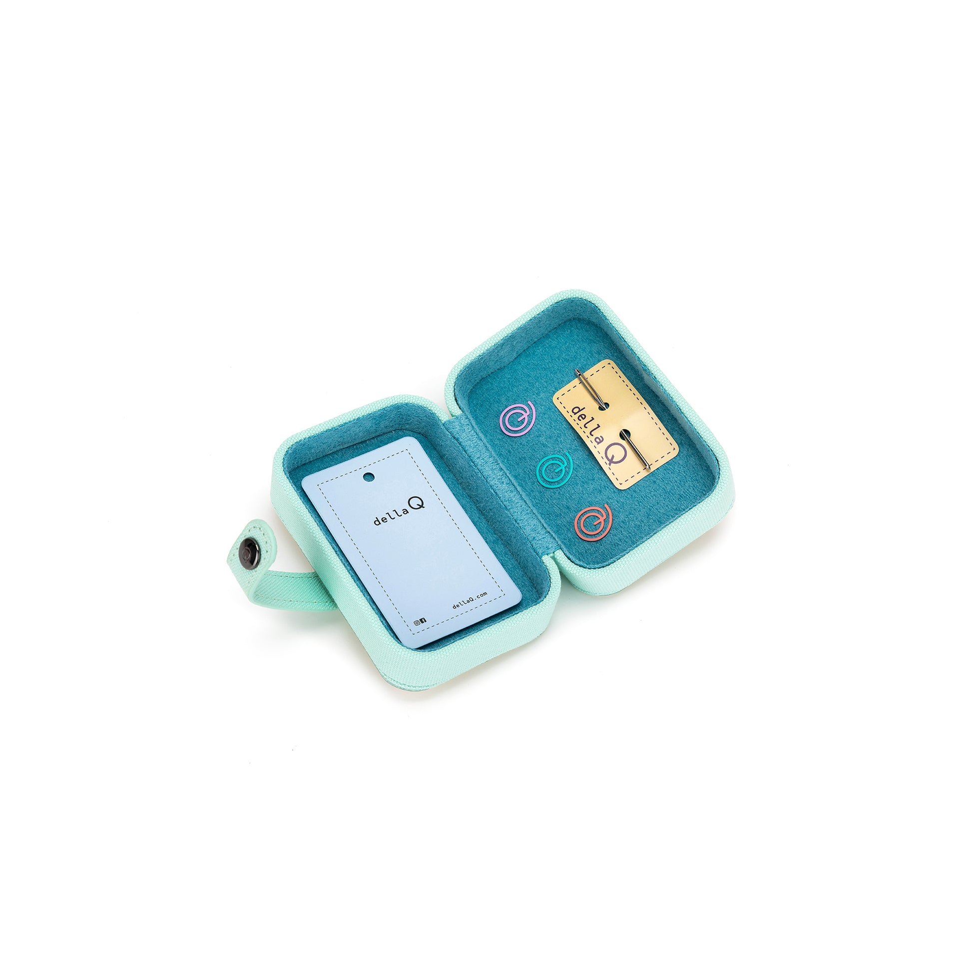 The della Q Buddy Case gets a GLOW-up. With powerful interior magnets, a durable frame, and sleek canvas & iridescent vinyl construction, this compact case keeps your essentials secure. Color-coordinated with the GLOW Train Case, it’s the perfect companion for crafting on the go.