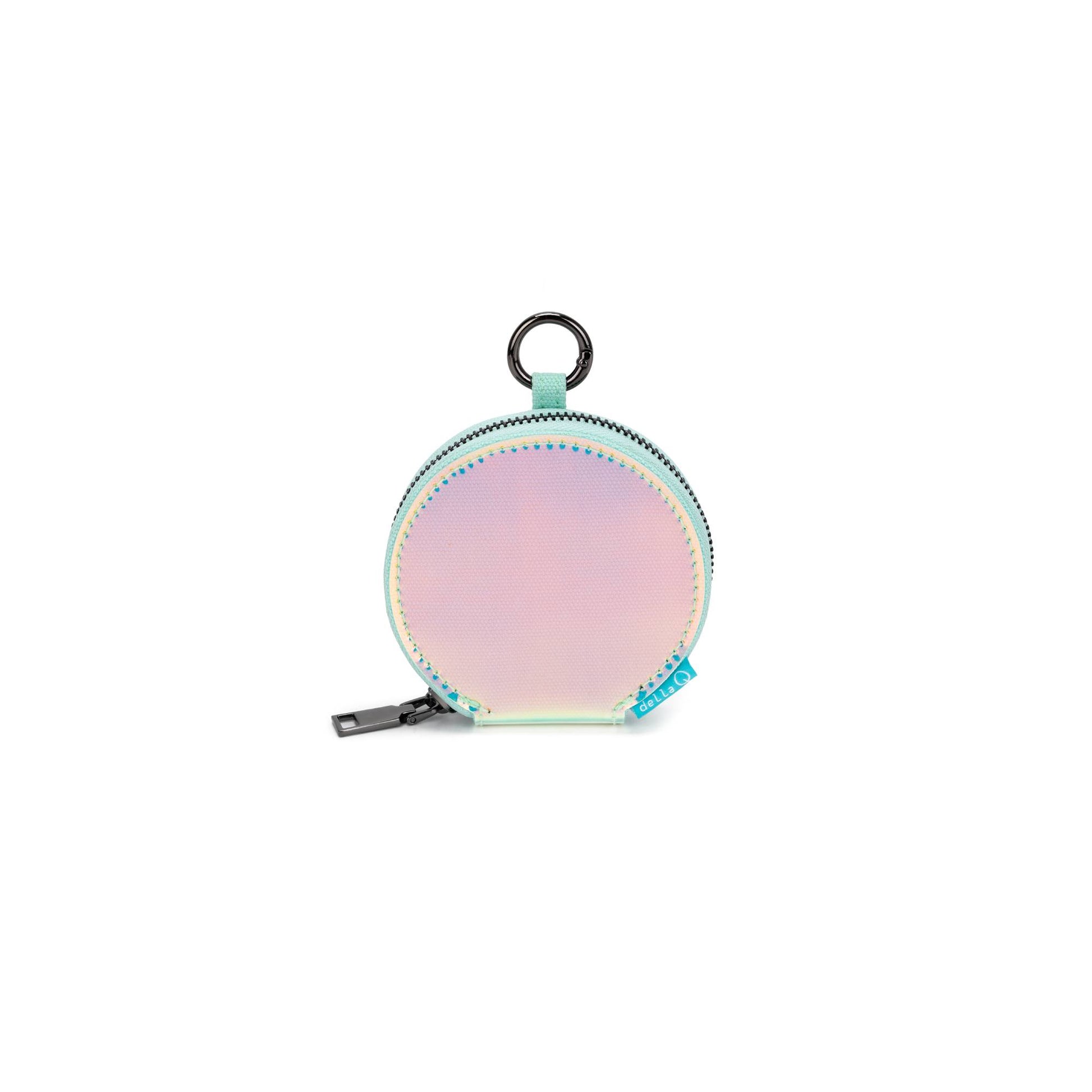 The GLOW Round Mini Zip is your go-to for organizing notions in style. Magnetic interior walls hold stitch markers and needles in place, while the compact design clips effortlessly onto your favorite on-the-go bag. Made in canvas and wrapped in a translucent iridescent vinyl.